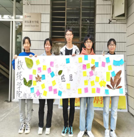 11月19日至20日,20级数应三班开展了“感恩板”展示活动。同学们将真挚的感恩话语写在小纸条上,这些话有说给老师的,有讲给父母的,还有的是表达给同学、食堂阿姨以及校园工人的。之后,大家将纸条进行整理并将其粘贴在展示板上,并将展示板放在校园之中进行展览,号召更多的同学参与到公司的活动中。