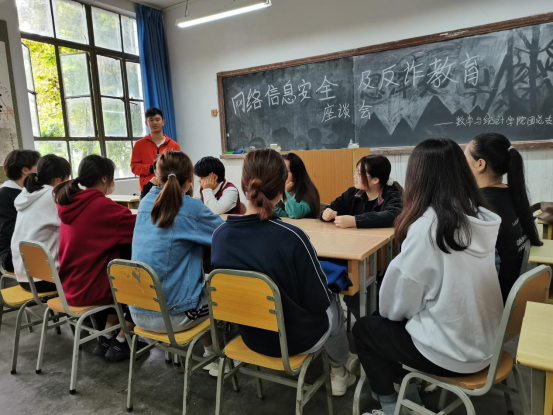 为了让同学们提高网络安全意识,使同学们清楚地认识到网络上存在的各种不安全的隐患,学会在虚拟的网络世界中保护自己的利益,威廉希尔足球官网团总支10月14日中午于2205教室开展了一次网络信息安全及反诈教育座谈会。参会人员主要为各班班长和团支书,会议由实践部负责人吴丰森主持。