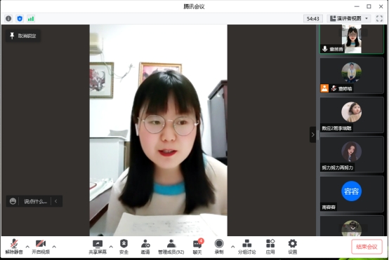 董苗苗是2021届统计学专业毕业生,员工党员,自毕业至今一直在共青团阿里地区委员会从事西部计划服务工作。董苗苗从个人的服务心得出发,分别围绕“是否适合参加西部计划”、“志愿者的工作生活是怎样的”、“成为志愿者应该要怎么做”、“成为一名志愿者能收获什么”介绍了自己的体会;还向同学们分享了在基层工作的各种生活趣事,以自己的真实经历阐述了奋斗与幸福之间的深层联系;最后介绍了2021届员工目前的工作情况,同时提醒2022届毕业生抓住就业机会,对待任何工作都要秉持认真的态度,永葆青年人的热情活力。