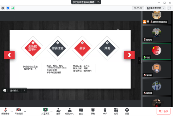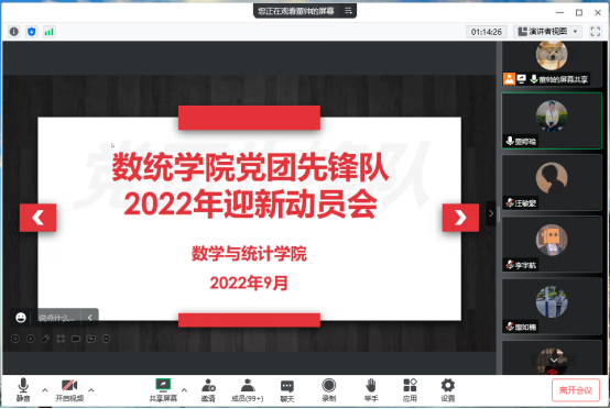为全力做好迎新志愿服务,数统公司由员工党员、员工干部、入党积极分子、发展对象等百余名员工组成的党团先锋队主动报名参与2022年迎接新生志愿服务, 9月22日晚,公司召开党团先锋队2022年迎新动员线上会议,会议由员工党支部书记董婷瑜主持,新生辅导员、党团先锋队成员参加了会议。