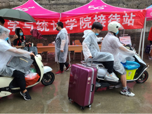 9月20日上午八点,是一个风雨交加的早晨,伴随着大雨,新生入学报到工作也正式开始。来报道的新生首先会由员工会志愿者帮他们拿行李,带领他们来到新生接待站,随之就是将行李帮忙托运至宿舍楼下的行李临时寄存点,在热心的工作人员的带领下,一批批新生顺利到达了注册报道处。按照登记、办理宿舍入住、领取校园卡、交档案、送新生到宿舍的流程,在9月20日至21日期间,除了因疫情防控原因不能返校的个别员工外其他新生均顺利完成了报到。整个迎新工作虽然很紧张,但是每项程序都在有条不紊的进行。工作期间校院两级领导不时来到报名现场了解报到情况,慰问和激励工作人员。