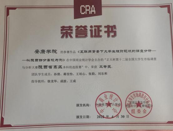 第十二届陕西省市场调查大赛省级三等奖
