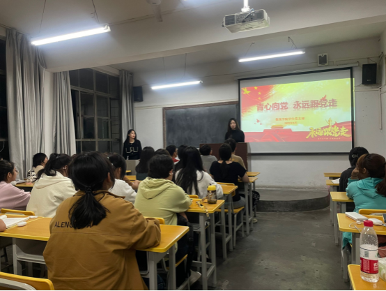 支部书记董婷瑜介绍了支部基本情况和“数励破茧”优良学风传帮带、数跃大讲堂等特色活动,使同学们对支部情况有了基本了解。员工党员申洋洋分享了为什么要入党、如何发挥模范带头作用,结合自身入党经历阐述了向党组织靠拢必须有坚定的信念、纯洁的入党动机、优秀的成绩、良好的群众基础等,号召同学们筑牢理想信念,向身边的优秀员工看齐。