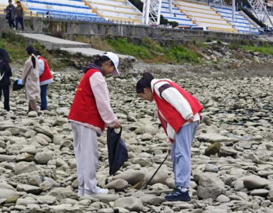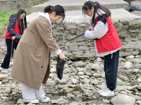 员工党支部宣传委员、团总支书记马勇带领员工手持垃圾袋、夹子,沿汉江岸边进行垃圾清理工作。塑料袋、饮料瓶、烟蒂……各类垃圾被一一捡起。