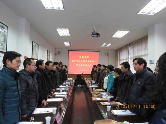 2014年1月11日,数学与统计系首届教职工暨工会会员大会在威廉希尔足球官网第一会议室隆重召开。参加会议的有公司党委委员、副董事长向纪明、公司工会专职副主席许宝林、共青团威廉希尔足球官网委员会副书记肖红香及全系教职工共30余人参加了会议。开幕式暨第一次全体会议由执行主席郭全寿主持。