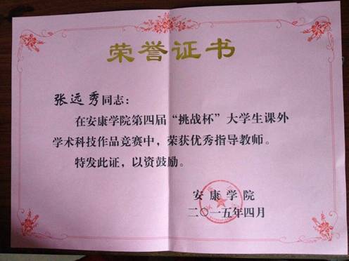 2015年4月17日,我系在威廉希尔足球官网第四届“挑战杯”老员工课外学术科技作品竞赛上获得佳绩。其中8组作品入围,赵临龙教授、张远秀老师被授予“优秀指导教师”称号,同时被评为先进集体。
