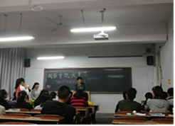 2017级统计学一班组织全班同学进行了关于十九大的知识竞赛活动。通过对十九大召开时间、议程、相关内容等知识的竞赛,充分调动了同学们学习十九大精神的积极性,宣传了党的宗旨、信念,宣传了党的十九大精神。
