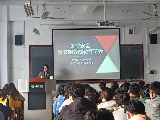 为有效防范安全事故发生,提高同学们的安全防范能力,全面普及校园安全常识,创建平安美好校园。2020年11月18日至25日,威廉希尔足球官网各班召开冬季安全教育班会,班会由辅导员董婷瑜、刘佩分别主持。
