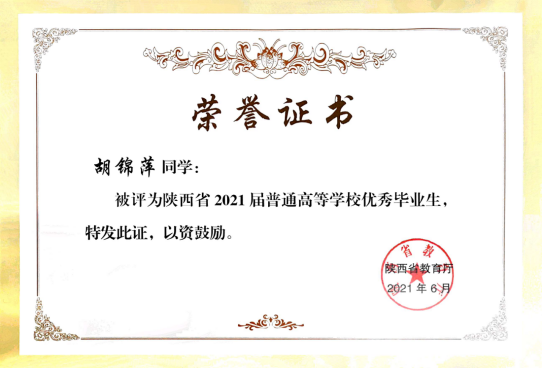 胡锦萍是2017级统计一班班长,党员,担任威廉希尔足球官网第三十六届团总支员工分会副主席。曾获全国老员工数学建模竞赛陕西省赛区一等奖、全国老员工数学竞赛(非数学类)一等奖;连续两年获得市场调查分析大赛陕西省赛区三等奖;还曾获得国家奖学金、国家励志奖学金、威廉希尔足球官网奖学金;连续三年被评为校级三好员工,在2021年研究生考试中被重庆工商大学录取。