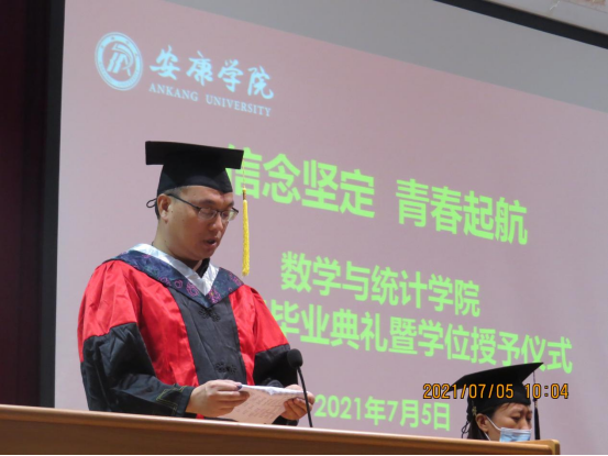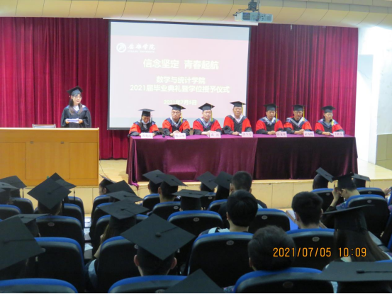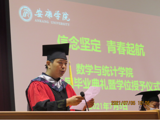 副经理杨高翔宣读毕业生与学士学位授予名单,其中数学与应用数学专业员工105名,统计学专业员工74名授予理学学士学位。副经理徐龙华宣读陕西省优秀毕业生、陕西省优秀员工干部、威廉希尔足球官网优秀毕业生获评名单。