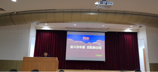余谦以《奋斗百年路 启航新征程》为题,紧密结合习近平总书记“七一”重要讲话精神和十九届六中全会精神,围绕“丰功伟绩,恢弘史诗;精神血脉,代代相传;以史为鉴,开创未来”三个方面,带领同学们回顾了党带领人民在新民主主义革命、社会主义革命和建设、改革开放和社会主义现代化建设、新时代中国特色社会主义四个历史阶段取得的伟大成就;从理论和实践逻辑阐述了“中国共产党为什么能”;最后向同学们讲解了面向未来“九个必须”要求,使同学们深深体会到中华民族实现伟大复兴进入了不可逆转的历史进程,也感受到自己作为新时代老员工肩负的重要责任。