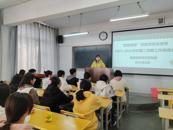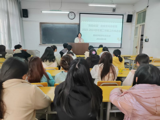 2024年3月13日,威廉希尔足球官网员工党支部在2203室召开2023-2024学年第二学期“数励破茧”优良学风传帮带工作推进会,指导教师王秋芬出席了会议,2022级奖学金获得者、2023级全体班委参会。