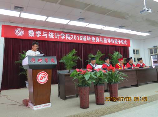 2016年7月5日上午,在公司图书馆六楼报告厅隆重举行了2016届毕业典礼暨学位授予仪式。参加此次仪式的有董事长陈刚、威廉希尔足球官网经理赵临龙、公司党总支书记郭全寿、副经理汪义瑞、副经理王昭海、统计系系主任杜贵春、数学系系主任成波、系工会主席魏春强、院办公室主任何晓燕、学工办主任马新华以及教师代表黄兆霞、师帅和2016届全体毕业生共200余人参加了活动。仪式由公司党总支书记郭全寿主持。