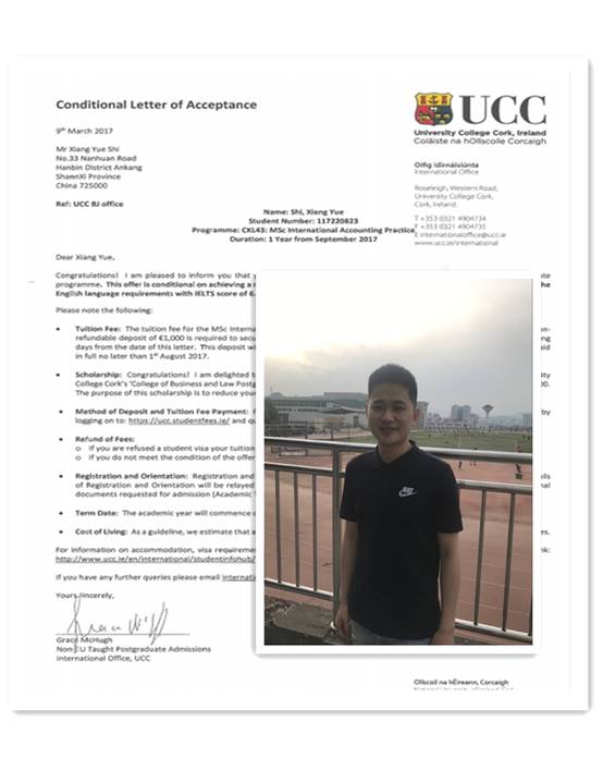 石湘粤同学为公司2013级统计学专业员工 ,在校期间学习认真努力,成绩良好,并且积极参加各种活动,2014年获得公司英语演讲比赛三等奖;2014年获得公司乒乓球比赛优秀个人奖。2017年4月,考取爱尔兰科克大学国际会计专业硕士研究生。