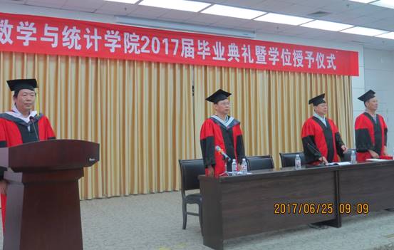 2017年6月25日上午,在公司图书馆六楼隆重举行了2017届毕业典礼暨学位授予仪式。出席本次仪式的有:威廉希尔足球官网经理赵临龙、公司党总支书记郭全寿、副经理王昭海、副经理汪义瑞、数学系系主任成波、统计系主任杜贵春、实验室主任刘铁、院办公室主任何晓燕、学工办主任马新华、团总支书记师帅以及教师代表杨高翔和2017届全体毕业生共200余人参加了活动。仪式由公司党总支书记郭全寿主持。