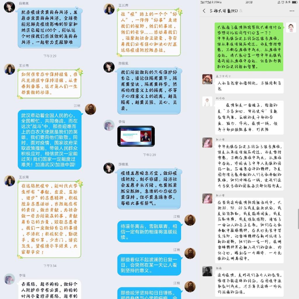通过观看此次思政课,同学们坚定了疫情阻击战必胜信心、深刻认识到了党的领导和社会主义制度的显著优势、充分了解到爱国这一最大的责任担当。同学们纷纷表示,在今后的学习生活中要扎实学习、苦练本领,做一名胸有大志、心有大我、肩有大任、行有大德的新时代有为青年。