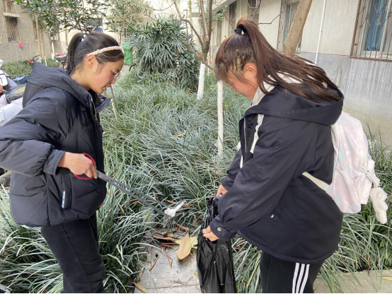 志愿者们明确分工后,用火钳、扫帚等工具,捡拾起校园内的垃圾。他们高涨的工作热情,得到了同学们的赞赏。志愿者们着重对卫生死角进行清理,他们有的打扫路面,有的捡拾草丛里的垃圾……“脏”和“累”似乎早已被遗忘,只有辛勤劳动的背影。大家的心里只有一个愿望,那就是通过自己的劳动,创造一个洁净文明的校园环境。