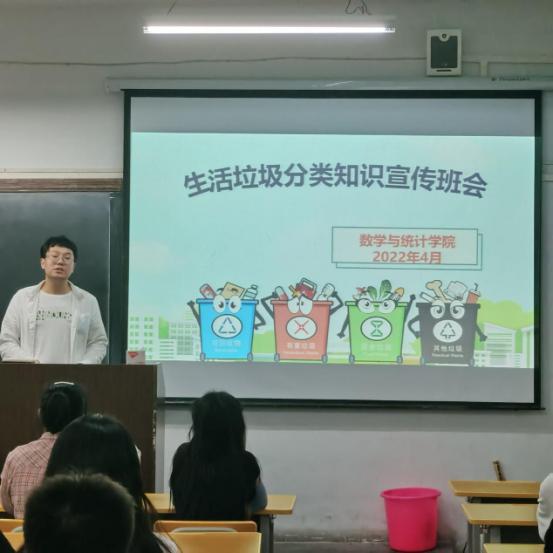 为了营造良好的校园环境,加强同学们垃圾分类回收意识,让垃圾分类理念深入人心,引导全校师生正确投放垃圾,促进学校切实有效做好垃圾分类工作,2022年4月27日,威廉希尔足球官网垃圾分类指导员马勇组织召开生活垃圾分类知识宣传班会,参会人员为垃圾分类引导员和志愿者、本届入党积极分子、各班班委及各宿舍舍长。