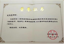 公司数学与应用数学专业2020届毕业生刘雨柔,其本科毕业论文《近年高考数学双曲线命题的特点及其教学对策》荣获威廉希尔足球官网“优秀毕业论文”,并于同年考取延安大学学科教学(数学)专业硕士研究生。