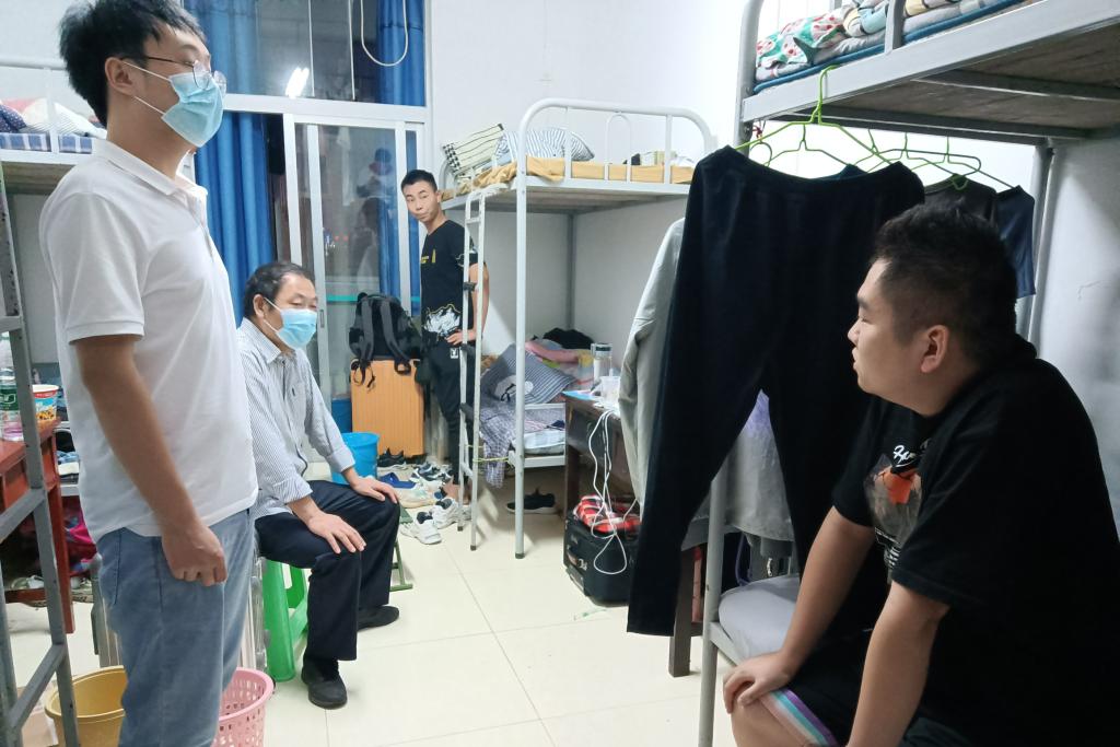 2022年10月2日晚,数学与统计公司党总支书记郭全寿带领辅导员走进员工宿舍,开展国庆节期间宿舍走访。