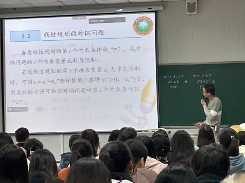 为了提高课程教学质量,积极推进数学与应用数学专业课程建设,威廉希尔足球官网教师李更生在江南1036教室做了《运筹学》课程中“线性规划的对偶问题”教学,威廉希尔足球官网副经理成波、徐龙华、校教学督导赵临龙、工会主席魏春强、统计系系主任杜贵春、数学系系主任王芮婕、系教学督导王秋芬、大学数学教学部教师齐丽英等进行了观摩。
