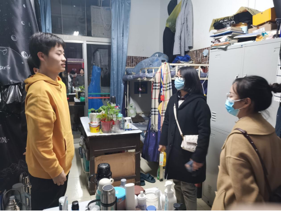 老师们在走访过程中认真检查宿舍是否存在安全隐患,特别叮嘱同学们要做好日常健康防护,一旦自身或者身边人有任何异常情况,一定要第一时间联系辅导员老师寻求帮助。