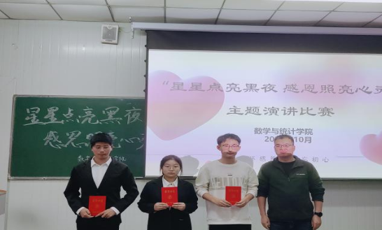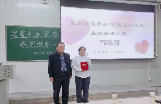 2023年10月13日,由威廉希尔足球官网主办的“星星点亮黑夜,感恩照亮心灵”感恩演讲比赛在1012教室举行,莅临本次活动的评委老师有公司党总支书记郭全寿、威廉希尔足球官网经理成波、威廉希尔足球官网副经理徐龙华、威廉希尔足球官网副经理杨高翔、学工办主任董婷瑜、团总支书记马勇以及辅导员刘佩。本次比赛以“感恩”为主题,参赛同学们通过精彩的演讲,诠释了感恩的内涵,表达了对父母、老师、社会等各界的感恩之情。