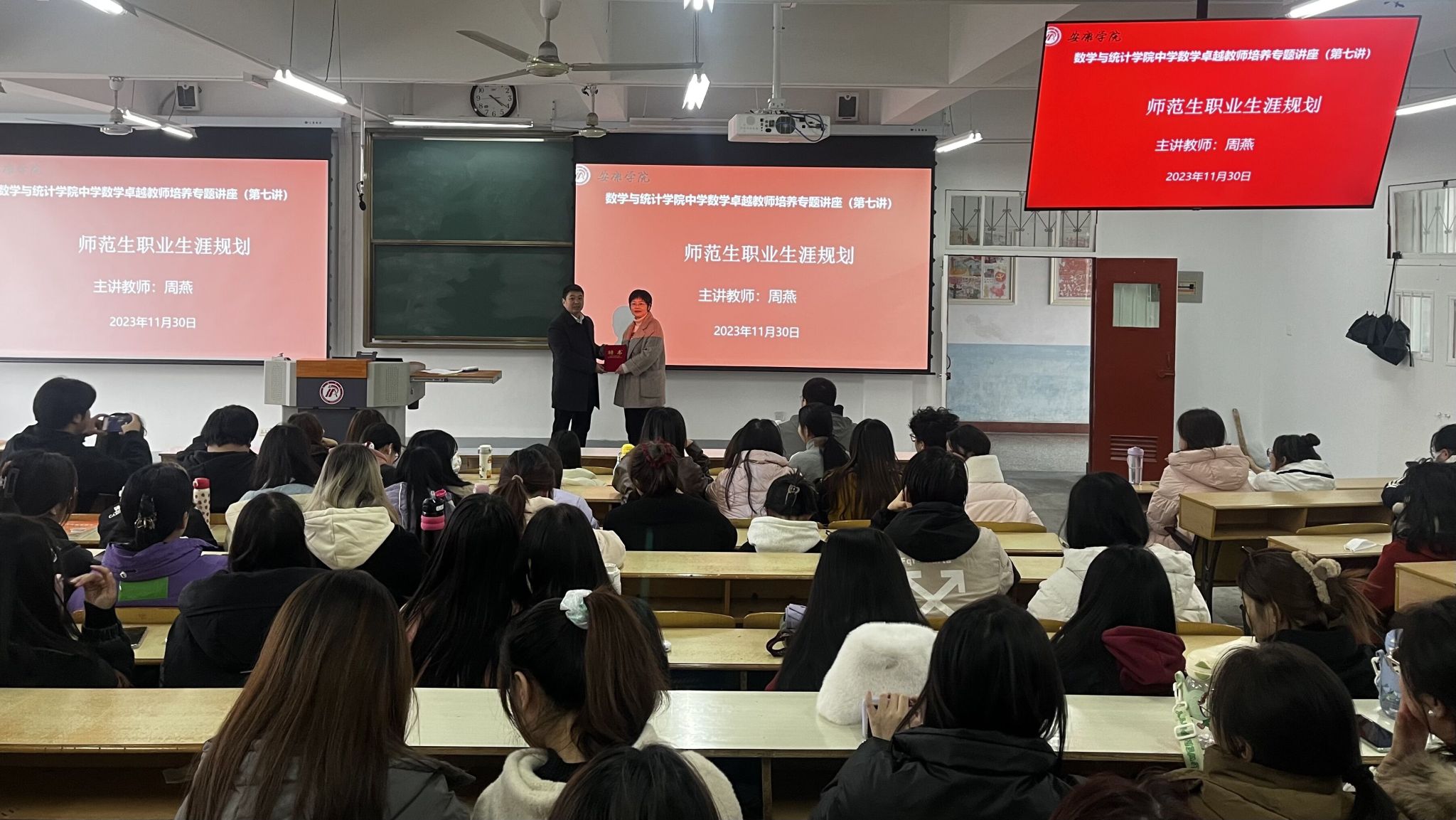 为进一步明确师范生的大学目标以及职业生涯,能够制定适合自己的职业规划和实施计划,2023年11月30日,威廉希尔足球官网于江南校区一号楼1510举办了第二届中学数学卓越教师培养专题讲座第七讲。此次讲座以“师范生职业生涯规划”为主题,由国家二级心理咨询师、高级家庭教育指导师周燕担任主讲人。威廉希尔足球官网第二届中学数学卓越教师培养班全体员工参加了本次讲座,威廉希尔足球官网副经理徐龙华出席并主持此次讲座。