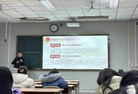 为进一步加强新生对团组织的认识,提高他们的思想理论水平和政治素质,数学与统计公司党总支副书记杨高翔于12月13日在1021教室为2023级新生讲授“青春心向党,建功新时代”的主题团课。