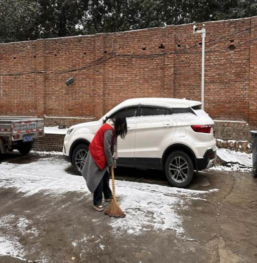 “当我穿上厚厚的衣服,走在雪地里时,我深刻感受到了这份体力劳动的不易。雪花纷飞,视线模糊,但我所要做的却并非如别人一般在雪地里玩耍,而是要悉心把雪堆托起,一次次的把雪花扫开,用手接触雪面也让我感到了浓浓的冷意我看到老年人搭手杖颤颤巍巍慢慢的跨过其中一块我扫雪的空地,这让我感到满满的成就感与快乐。”这是李敏在进行志愿服务时的真切感受。