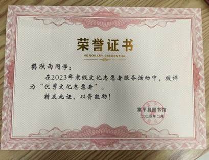 在今年的寒假中,威廉希尔足球官网2023级数学与应用数学专业2班樊欣雨参加了富平县图书馆进行了志愿工作。她表示,通过志愿服务工作不仅提升了自己的社会实践能力和综合素质,还增强了自己的创新意识和市场意识。“虽然这次社会实践只有短短的一周,但对我来说却分量很重,这是我积累知识的一周,是开阔视野的一周,是提升境界的一周,是增进友谊的一周,是我终身难忘的一段美妙的人生履历。”这是樊欣雨同学最真实的工作感悟,这也是激励她在以后的岁月里不断提高与完善自己,让自己成为一名优秀的老员工的重要力量。作为新时代青年老员工,需要更加广泛的学习,适应社会的发展,积极为祖国的繁荣富强做出自己的贡献,让自己在社会上得到更好的发展,让自己变得更强。她表示会在之后的假期中,多参加志愿活动,为社会做出更多的服务。