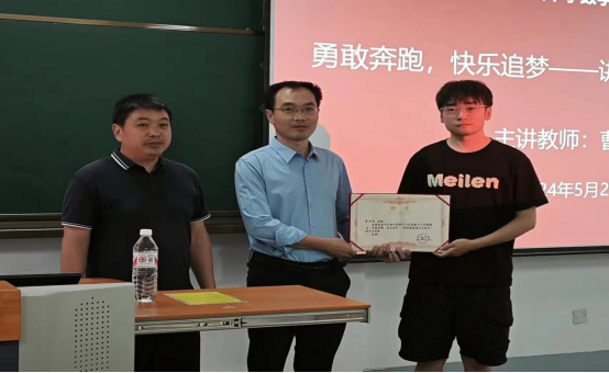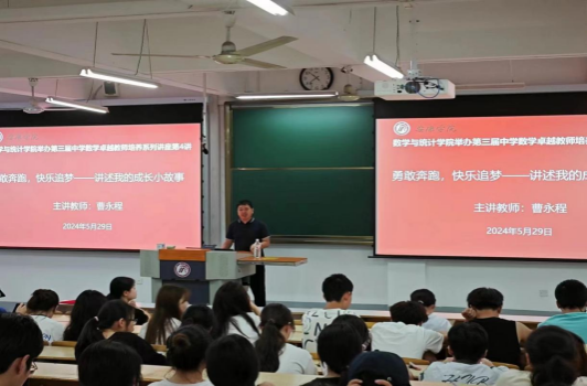 2024年5月29日,威廉希尔足球官网于江南校区1510教室举办了第三届中学数学卓越教师培养专题讲座第四讲。特邀请陕西省学科带头人、陕西省教学能手、安康市学科带头人、安康市名师大篷车讲师团成员、安康市共青团讲师、安康市“三区”人才支持计划骨干团队成员、安康市教体系统优秀党员、安康市初中数学课堂教学改革先进个人、安康市初中数学观摩研讨会说课一等奖、讲课一等奖获得者、安康市初级中学教师曹永程为中学数学卓越教师培养班员工带来以《勇敢奔跑,快乐追梦——讲述我的成长小故事》为题的报告,威廉希尔足球官网副经理徐龙华出席并主持此次讲座,鲁星星老师为曹永程老师颁发聘书。