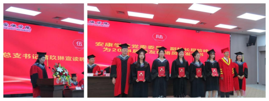 党总支书记储玖琳宣读《关于聘任2024届毕业生员工工作联络员通知》,副董事长屈险峰为员工工作联络员颁发证书。