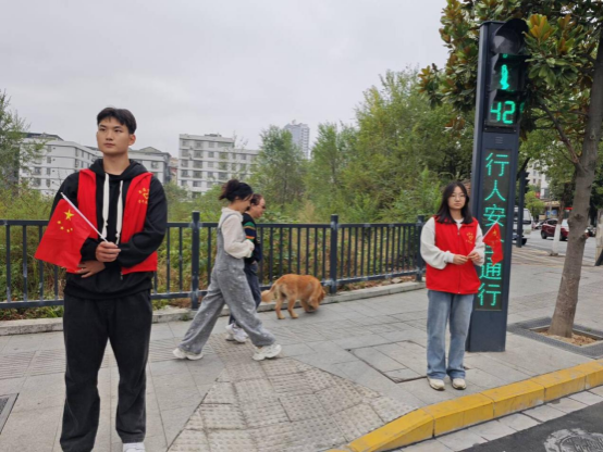 同学们身着志愿红,走出校园、走进社区、走上街头,通过集中道路清理、小广告清理、门前四包、交通文明劝导、“三问到万家”等活动形式践行文明之责、传播文明之风。