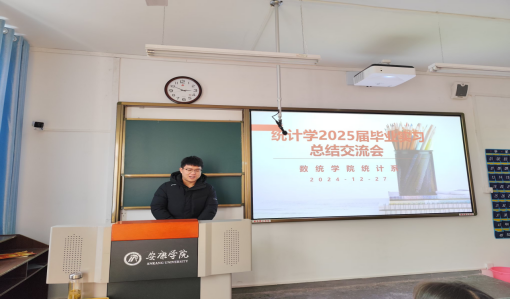 2024年12月27日,威廉希尔足球官网在2203教室召开了2025届统计学专业实习总结会。统计系主任杜贵春、辅导员马勇以及统计学专业2025届员工共同参加此次会议。会议由杜贵春主持。