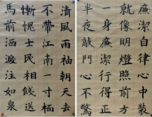 员工们以廉洁文化为主题,纷纷挥毫泼墨,书写三笔字作品。一幅幅作品或端庄秀丽,或苍劲有力,不仅让同学们感受到书法艺术的魅力,更传递出廉洁自律、正直无私的精神内涵。作品内容涉及名言警句、古诗词等,既有对廉洁文化的深入解读,也有对人生哲理的独到见解。