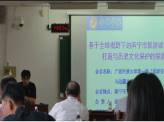 赵临龙教授论文《基于全球视野下的南宁市旅游城市品牌打造与历史文化保护的探索》入选第一届“国家安全与边疆治理”学术研讨会,在南宁市旅游资源分析的基础上,提出南宁市旅游发展的建议:加强推进南北旅游大通道(包头-西安-安康-桂林-湛江-海口)构建同时,提升南宁市边境国际特大城市“中国绿城,情歌之乡”品牌的影响力。论文由广西民族大学覃业朝研究生宣读。(图5) |