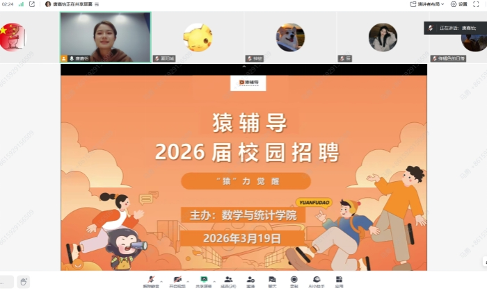 为抢抓春季招聘黄金期,精准服务毕业生求职需求,3月19日晚,威廉希尔足球官网携手国内在线教育头部企业猿辅导,成功举办线上专场宣讲会。公司百余名2026届毕业生在线参与,宣讲会由毕业班辅导员马勇主持。